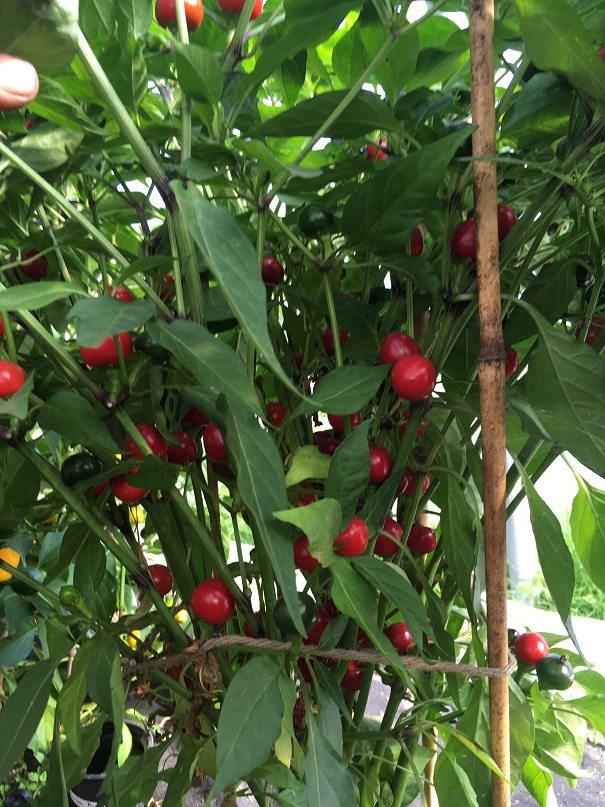 Im Treibhaus sehr ertragreicher roter kirschartiger Chili, der sich aber auch im Freiland gut schlägt. Von grün über schwarz und braun auf weinrot laufende Abreife. Pflanze wächst im Treibhaus recht buschig, einige Triebe können hier ausgeknipst werden. Viele runde Früchte von der Größe einer Sauerkirsche [1,5cm] eignen sich zum einlegen, trocknen und frisch verarbeitet.