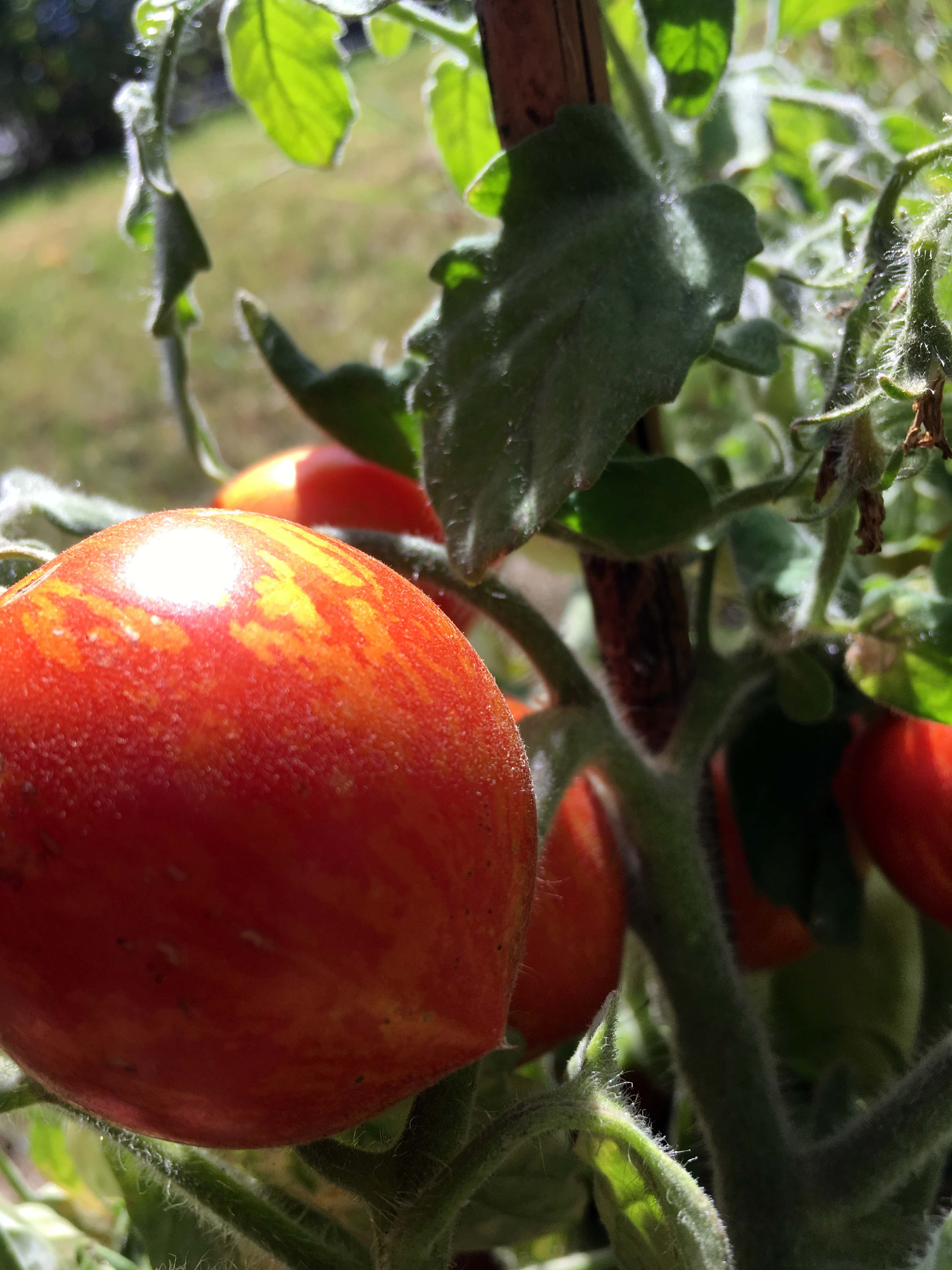 Die Fuzzy Wuzzy ist eine kleine, freche Buschtomate, die wegen ihrem niederen (50cm) und ausladenden Wuchs am besten im Kübel gedeiht. Mittig sollte sie dennoch mit einem Stab gestützt werden. Ihren Namen verdankt sie einem Indinerstamm. Die Früchte sind rot-gelb gestreift, oval oder rund und und haben wirbelartig ineinander verdrehte Fruchtkammern. Sie sind 10-50 Gramm schwer und fruchtig, mild, süß, saftig im Geschmack. Die Fuzzy Wuzzy gehört zu den frühreifen und ertragreichen Tomatensorten. Die silbrig schimmernden Früchtchen schmecken frisch, vom Busch genascht, am besten.