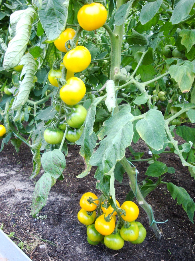 Diese aus Deutschland stammende Stabtomate ist schon seit Mitte des 19. Jahrhunderts bekannt und wird seither im deutschsprachigen Raum durchgehend von Hobbygärtnern und Erwerbsgärtnern angebaut und vermehrt. Die robuste Pflanze wird bis zu 200cm hoch und ist sowohl für den geschützten Anbau als auch für den Anbau im Freiland geeignet. Ein- manchmal auch mehrtriebig gezogen entwickeln sich bereits früh hübsche, runde und goldgelbe 50-80 Gramm schwere Früchte, welche angenehm fruchtig-mild schmecken und dabei einen geringen Säuregehalt aufweisen. Dies macht die Goldene Königin zu einer wertvollen, sehr magenverträglichen und unentbehrlichen Bereicherung im Tomatensortiment.