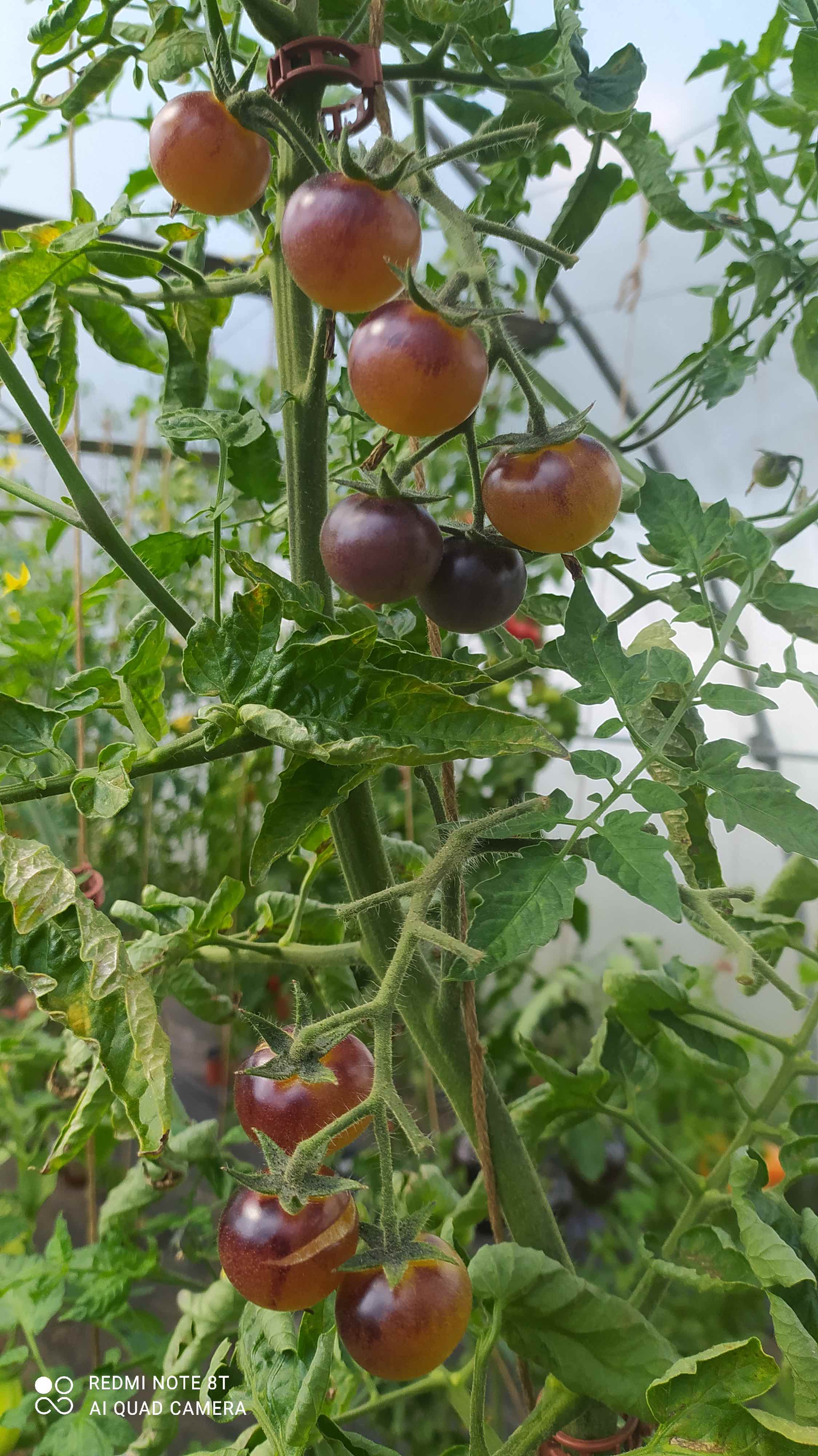 Die grüne Variante der Antho-Clicke bringt mit einem Schuss mehr Säure etwas Leben in die übersüßte Schnute. Wie viele grüne Sorten reift diese Kirschtomate ins Ockergelbe und behält dabei ihre hübschen violetten Schultern.