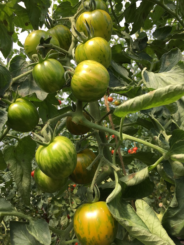 Die kleine, weniger bekannte Schwester der "Grünen Zebra". Ertragreiche, leckere grüne Sorte mit recht langem Erntefenster. Die Früchte gehören zu den Größeren in der Cherrywelt [50g] und sind wirklich süß und fruchtig. Wohingegen die Früchte der größeren Salattomate deutlich mehr Säure und ein eher würziges Aroma hervor bringen.