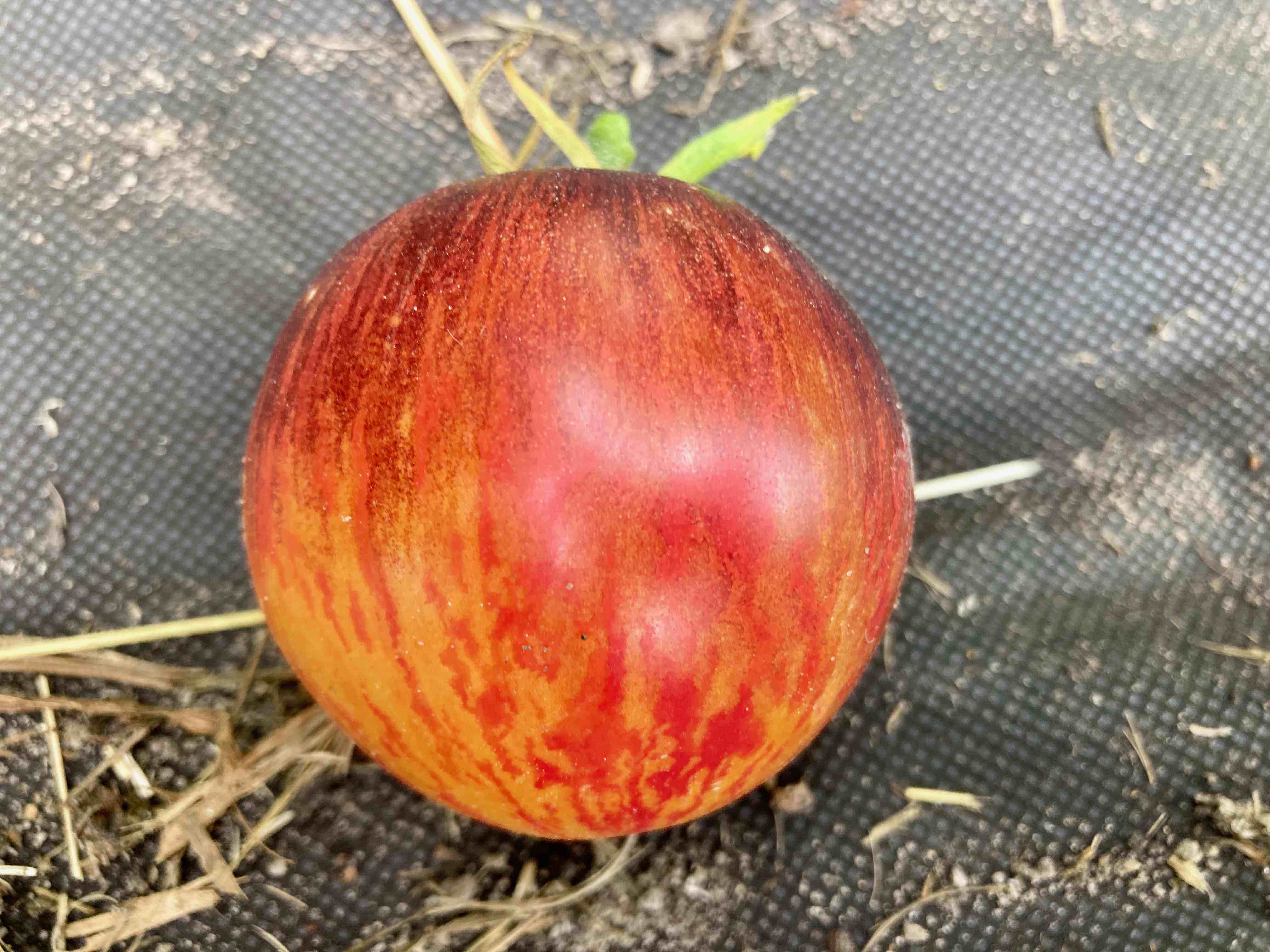 Sehr hübsch die Kleine. 60g Früchtchen kommen hier in super hübschem Dress. Ein Farbenspiel aus rosa rot orange gelb und lila in der Reife. Die Form variiert um oval bis rund. Von einem der aktuell aktivsten Züchter Bill Yoder aus den USA erschien diese Sorte in seiner Duran-Duran-Zuchtreihe. Ordinary World ist ein Song dieser Band. Und nach diesem Schema vergibt Yoder die Namen für seine Sorten. Eine andere aktuell unterhaltsame Zuchtreihe dieses Züchters nennt sich "Depeche Mode" - einige Sorten findet ihr hier im Shop, wenn ihr DM in die Suche eingebt.