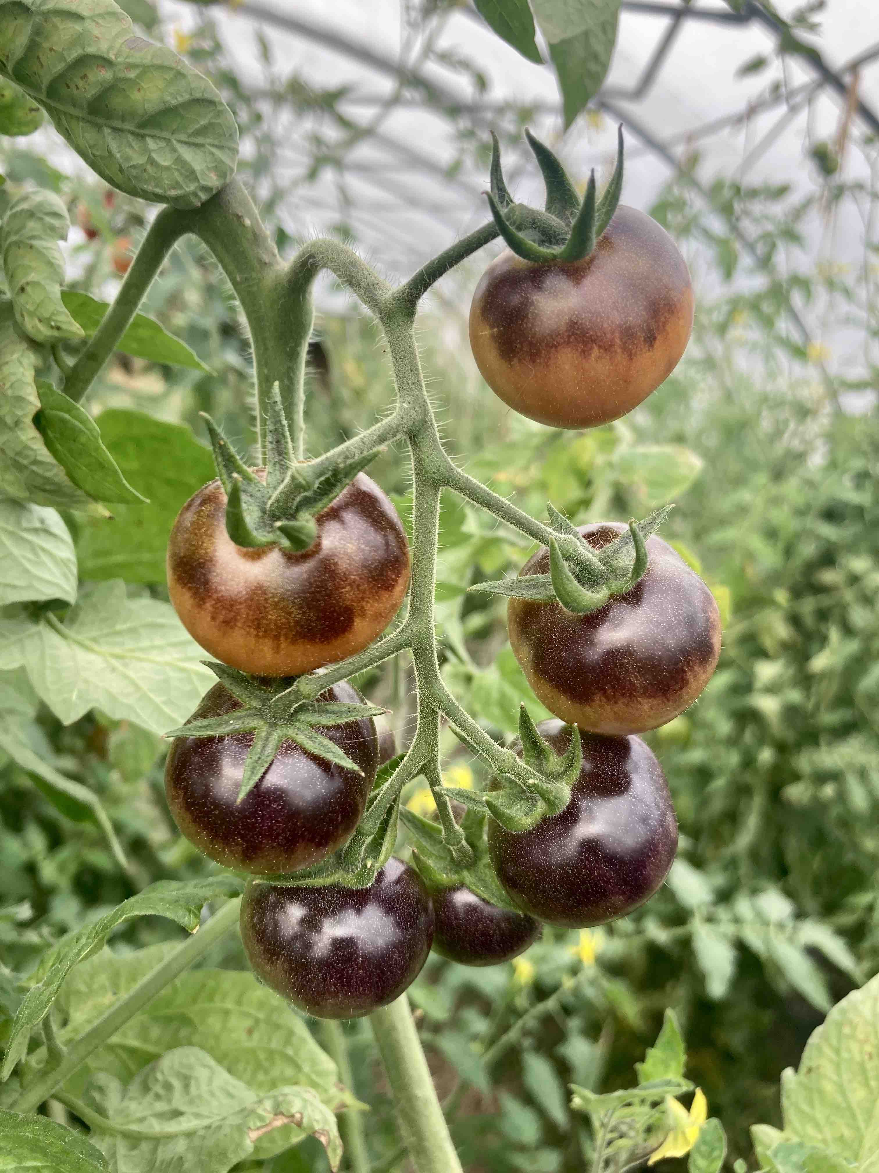 Tomate ANTHO GRÜN10 Korn Bio-SaatgutDie grüne Variante der Antho-Clicke bringt mit einem Schuss mehr Säure etwas Leben in die übersüßte Schnute. Wie viele grüne Sorten reift diese Kirschtomate ins Ockergelbe und behält dabei ihre hübschen violetten Schultern.
