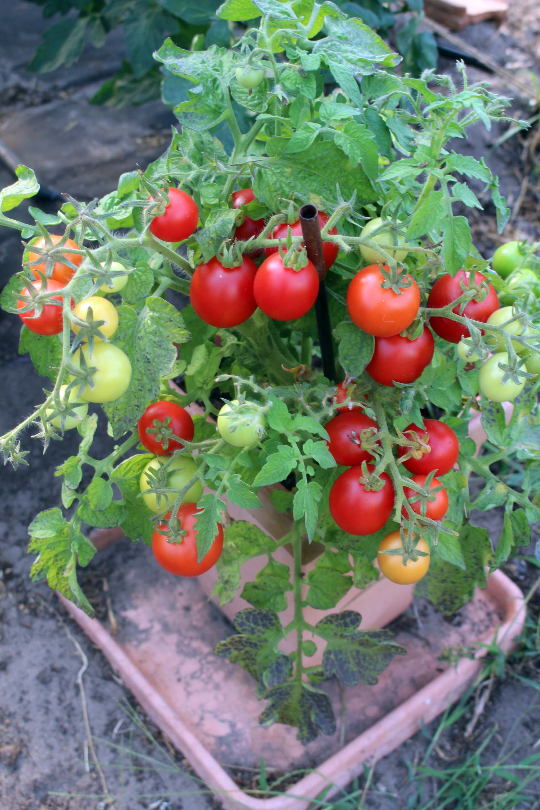 Die schwach, jedoch kompakt wüchsige Buschtomate ist reich tragend und eignet sich für den Anbau in Kübeln auf dem Balkon. Die knackige Frucht ist zum Frischverzehr sehr beliebt.